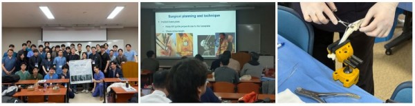 이론 교육에서 배운 내용을 바탕으로 모사골을 통한 실습을 통해 수술기구의 이해와 임플란트 사용법을 배우는 자리까지 마련되었다.
