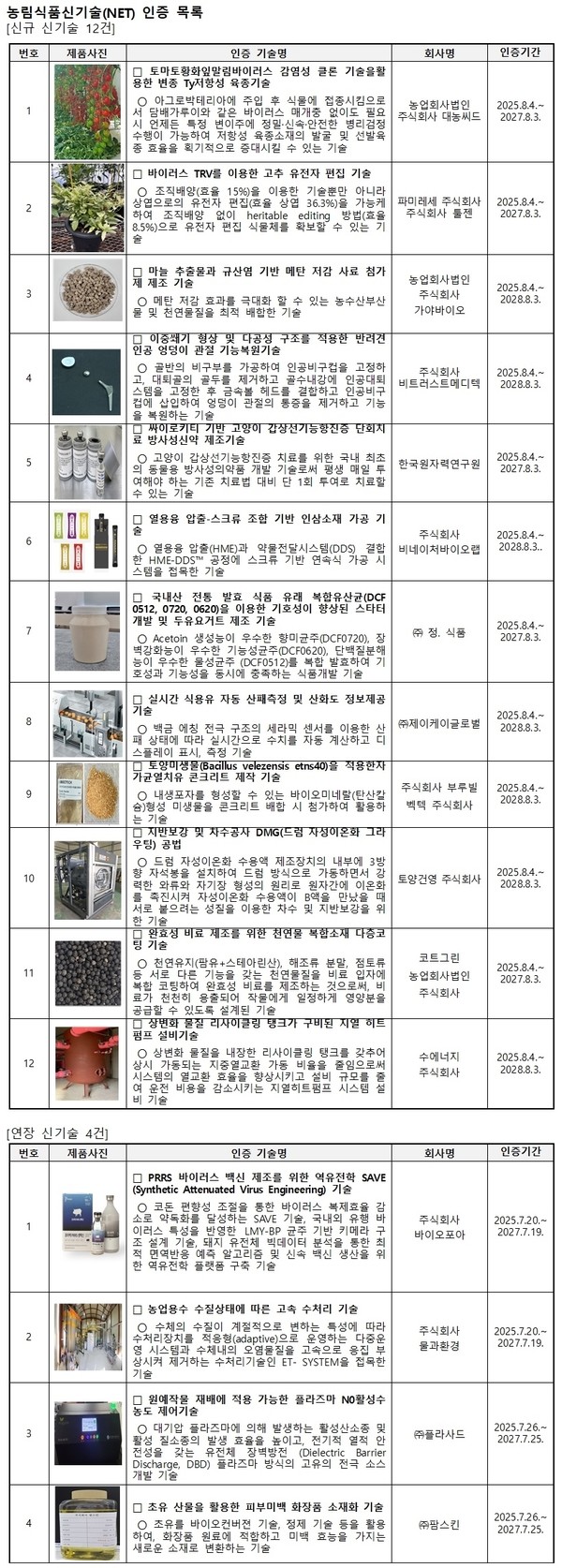 2025년 상반기 농림식품신기술(NET) 신기술 인증