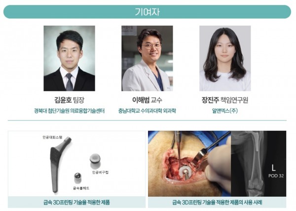 티타늄 합금 3D프린팅을 이용한 반려동물용 인공엉덩이관절 기술에 금속 3D프린팅 기술을 활용한 사례를 통해 수상하게 되었습니다.